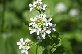 Son nom d’alliaire officinale (Alliaria Officinalis) vient de l’odeur d’ail dégagée par ses feuilles quand on les froisse. D’un point de vue botanique, elle n’a pourtant rien à voir avec l’ail.