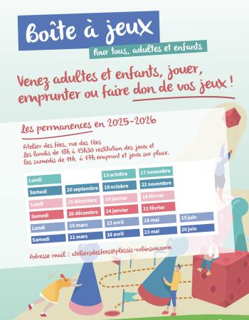plessis-robinson [point] com (developpement[dot]durable[at]plessis-robinson[dot]com) . Ensemble, faisons vivre la Boîte à jeux tout au long de l’année !