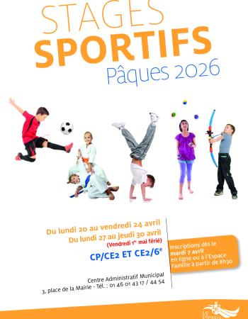 Le service municipal des Sports propose aux enfants de 6 à 12 ans, des stages sportifs sur les petites vacances scolaires : en hiver, à Pâques et à la Toussaint.